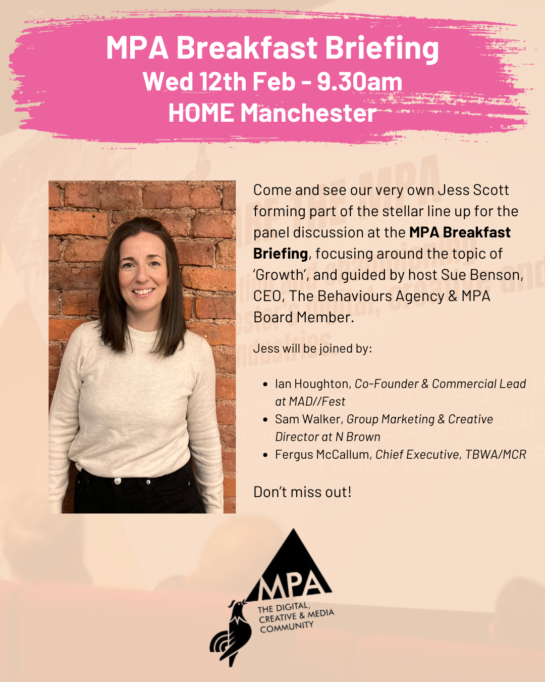 Come & see our co-founder, Jess Scott, form part of the line up at the MPA Breakfast Briefing